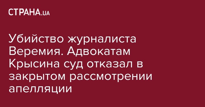 Апелляционный суд Киева отказал адвокатам Юрия Крысина в рассмотрении апелляционной жалобы на условный приговор их подзащитному по делу об убийстве журналиста Вячеслава Веремия в закрытом режиме.