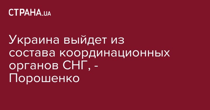 "Мы прекращаем участие в координационных органах СНГ. МИД проанализировал и проинформировал правительство о целесообразности дальнейшего пребывания в составе тех или иных сделок. Мы будем очень тщательно прорабатывать эти позиции, но Украина не будет больше участвовать в каких-либо координационных органах СНГ", - отметил Порошенко.