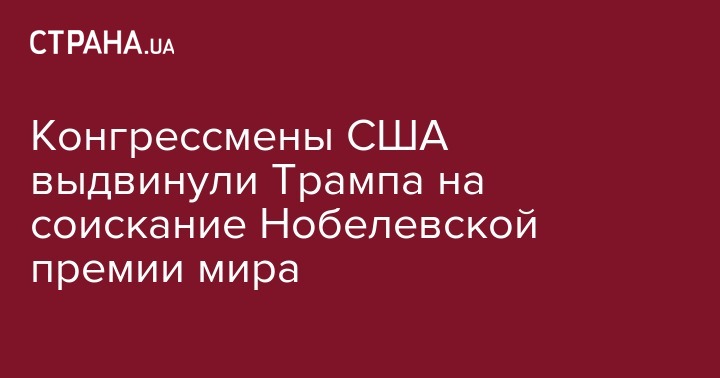 Конгрессмены США выдвинули Трампа на соискание Нобелевской премии мира