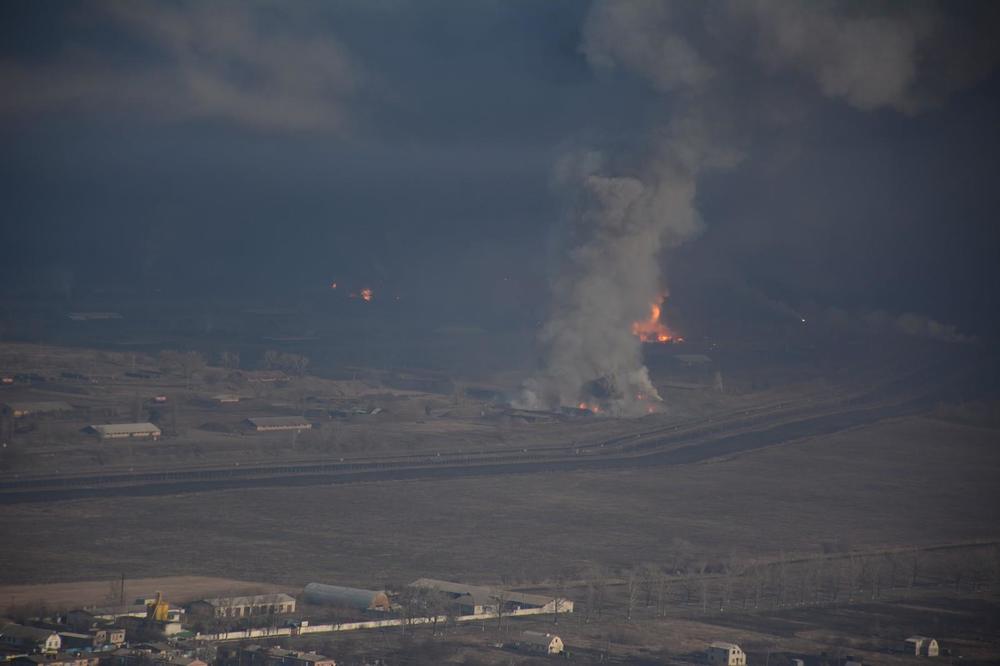 Позже премьер-министр Украины Владимир Гройсман сообщил, что в огне примерно половина базы. Вокруг зоны пожара был организован 7-километровый рубеж, зона в радиусе 50 км объявлена чрезвычайной зоной.