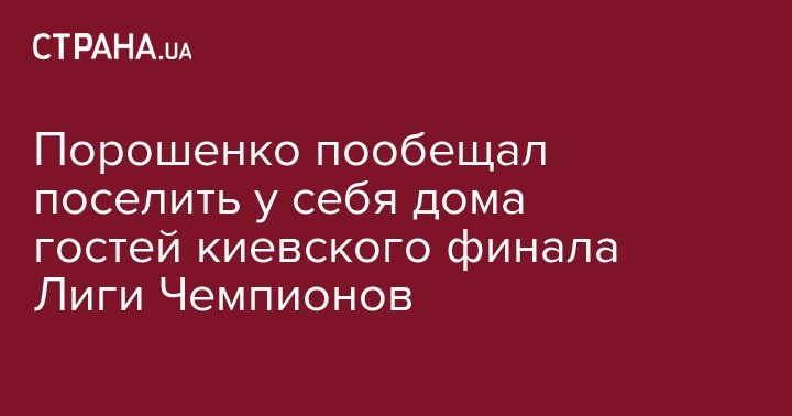 Президент Украины Петр Порошенко заявил, что некоторых гостей во время проведения финальных матчей Лиги чемпионов по футболу он вынужден пригласить к себе домой, поскольку все гостиницы в Киеве уже забронированы.