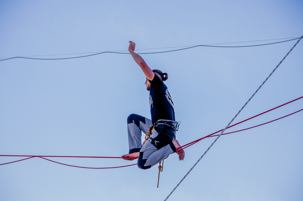 Также в 2017 году Станислав Панюта установил беспрецедентное достижение – прошел по веревке между двумя воздушными шарами, парящими на высоте 660 метров.