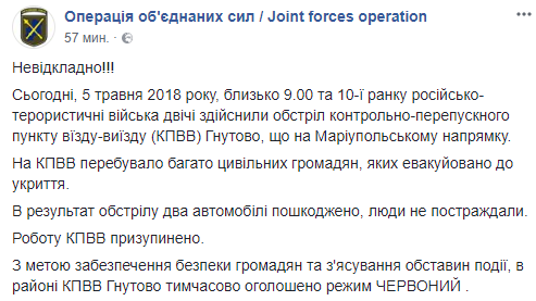 Обстрелы шли около 9:00 и 10:00. В это время на КПВВ находилось много мирных граждан, которых эвакуировали в укрытие.