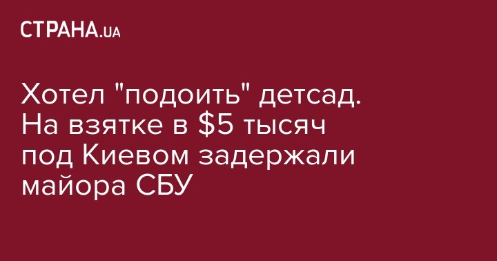 Сотрудники управления внутренней безопасности СБУ задержали на взятке оперуполномоченного одного из подразделений СБУ Киевской области, который вымогал от директора дошкольного учреждения взятку в размере $5 тысяч.