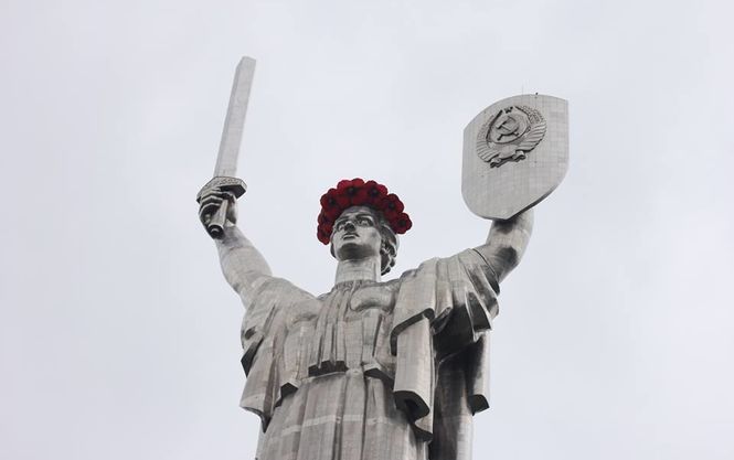 Сегодня, 8 мая, в Украине чествуют память жертв Второй мировой войны. Официальным символом сегодняшнего дня стал цветок мака. Этим венком украшен монумент "Родины-матери" в Киеве.