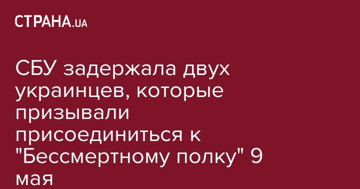 Служба безопасности Украины задержала двоих украинцев, которые призывали к участию в акции "Бессмертный полк" на 9 мая.