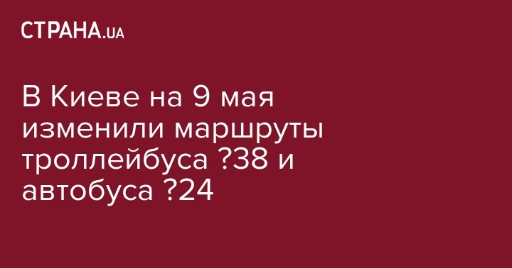 В Киеве на 9 мая изменили маршруты движения троллейбуса №38 и автобуса №24. Об этом предупредили в КП "Киевпастранс".