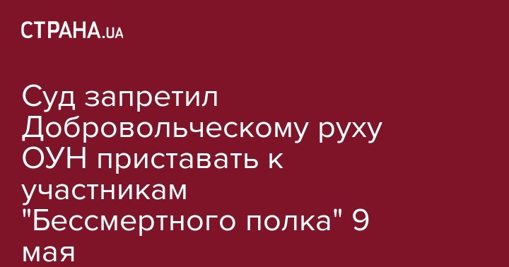 Как рассказала "Стране" истец, юрист Елена Бережная, согласно решению суда Добровольческий Рух ОУН не имеет права проверять портреты предков, которые будут нести участники акции "Бессмертный полк", наличие запрещенной символики у участников акции.