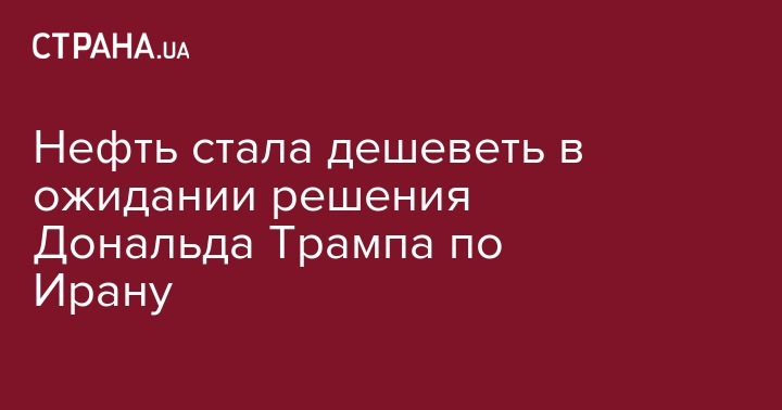 Цены на нефть эталонных марок продолжают снижение, рынок ждет решения президента США Дональда Трампа относительно соглашения по ядерной программе Ирана. Цена июльских фьючерсов на нефть Brent на лондонской бирже ICE Futures к 18:35 по киевскому времени снизилась на $0,75 (0,98%) - до $75,42 за баррель.
