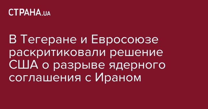 В Иране и ЕС отреагировали на односторонний разрыв властями США многостороннего ядерного соглашения об остановке ядерной программы Тегерана.