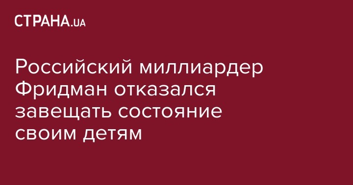 Российский миллиардер Фридман отказался завещать состояние своим детям