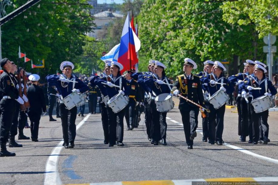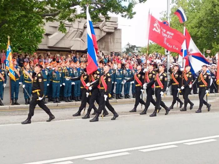 В параде приняли участие 1450 человек. Это военнослужащие Черноморского флота, соединений Южного военного округа, дислоцированных в Севастополе, курсанты Черноморского высшего военно-морского училища имени Нахимова, войска Национальной гвардии России, МЧС и других силовых ведомств.