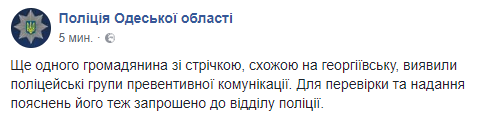 Позже был обнаружен еще один мужчина с лентой, похожей на георгиевскую. Для проверки и дачи объяснений его также пригласили в отдел полиции.
