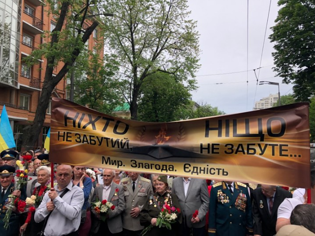 По Киеву 9 мая прошел марш "Бессмертный полк", который стартовал у метро Арсенальная и дошел к Парку Вечной славы, чтобы возложить цветы к Вечному огню.