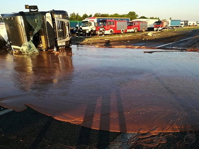 В Польше перевернулась фура с жидким шоколадом, дорогу залило на 9 километров
