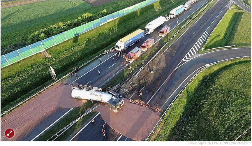 В среду, 9 мая, в Польше разбилась фура с жидким шоколадом.