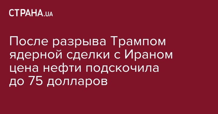 Нефть подорожала после объявления президента США Дональда Трампа о выходе из ядерной сделки с Ираном и возобновлении санкций против этой страны. Котировки Brent, снижавшиеся в ходе торгового дня, во вторник 8 мая, на $3 на неподтвердившихся новостях о том, что полного выхода из сделки не будет, отыграли потери, вновь выйдя на уровень $75,3 за баррель.