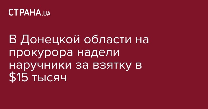 В Донецкой области сотрудники ГПУ и СБУ задержали прокурора областной прокуратуры по подозрению в вымогательстве 15 тысяч долларов взятки.
