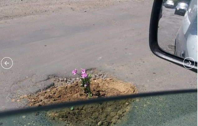 На Закарпатье ямы на дорогах начали засаживать цветами