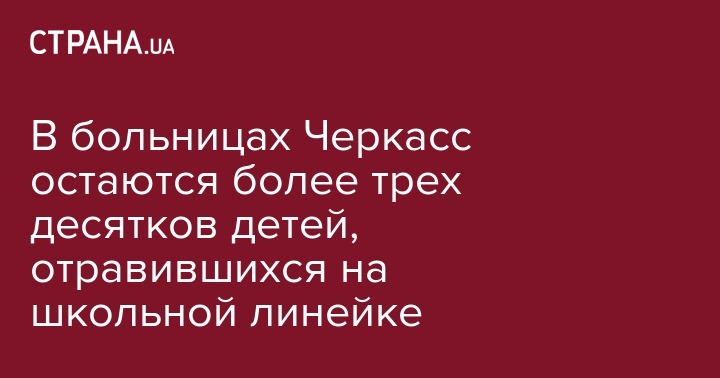 "Сегодня, 11 мая, 22 ребенка, которые были госпитализированы из школьной линейки в Черкассах, уже дома. В больницах - Черкасской детской областной и Черкасской областной - до сих пор находится 36 человек: 32 детей и 4 взрослых. Взрослого, который еще вчера был в отделении интенсивной терапии, уже перевели в обычную палату", - сообщает Минздрав.