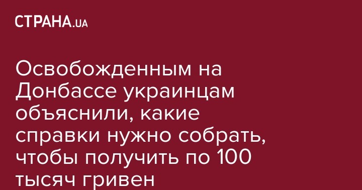 В сообщении, размещенном на сайте МинВОТ в пятницу, напоминается, что лицам, лишенным личной свободы и освобожденным 27 декабря 2017 года и 24 января 2018 года, выплачивается денежная помощь в сумме 100 тыс. грн (единоразово).