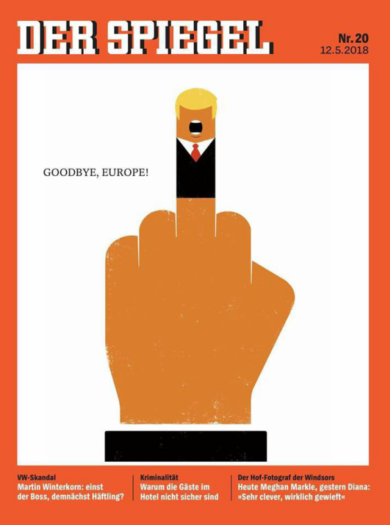 После скандального одностороннего разрыва США многосторонней ядерной сделки с Ираном - немецкое издание Der Spiegel выйдет с креативной обложкой.