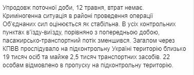 Впрочем, на странице Операции объединенных сил в Facebook информация о погибших на Донбассе 12 мая отсутствует.