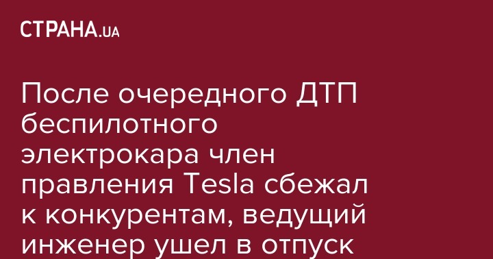 После очередного ДТП беспилотного электрокара член правления Tesla сбежал к конкурентам, ведущий инженер ушел в отпуск