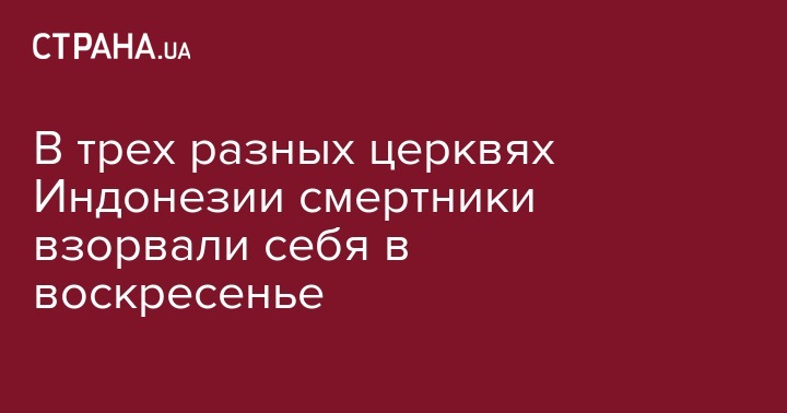 "Предполагаемые террористы-смертники взорвали себя в трех разных церквях в воскресенье в Индонезии. По меньшей мере 10 человек погибли, еще десятки получили ранения", - сообщил представитель полиции Восточной Явы Франса Барунги Мангери.