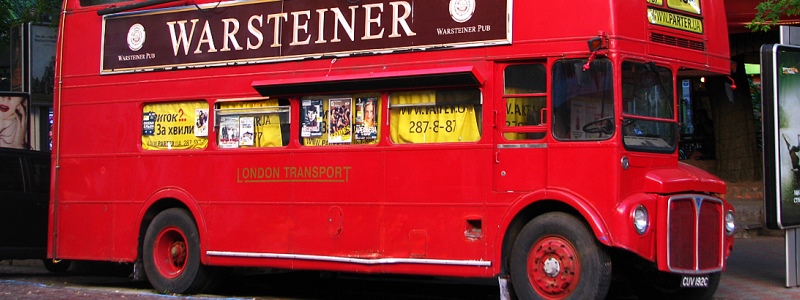 Сообщается, что лондонскую достопримечательность разместили здесь в начале 2000-х годов. Автобус приобрело и установило заведение Warsteiner Pub более 15 лет назад. Изначально из него должен был получиться пивной бар, но позже от этой идеи отказались. В нем оборудовали кассу компании Parter.ua, где можно было приобрести билеты на любой концерт, в том числе и в страны СНГ.