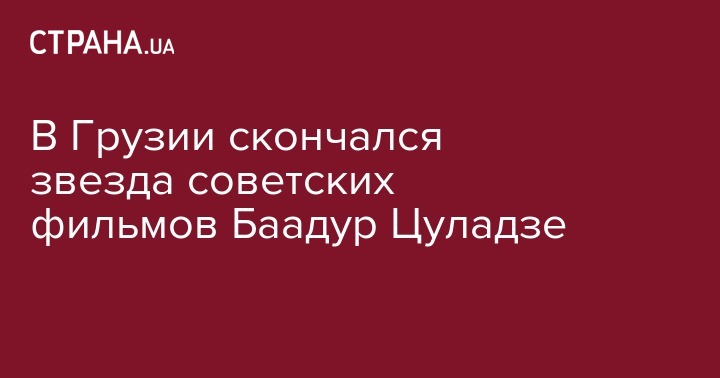 В Грузии на 84 году жизни скончался известный актер и режиссер, заслуженный артист Грузии Баадур Цуладзе. Зрителям он известен по ролям в таких фильмах, как "Приключения Буратино", "Будьте моим мужем", "Блондинка за углом", "Листопад".