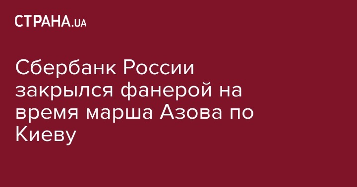 Отделение "Сбербанка России", которое находится в центре Киева, 20 мая, на время марша "Азова" забило витрины и окна фанерой и спрятало вывеску.