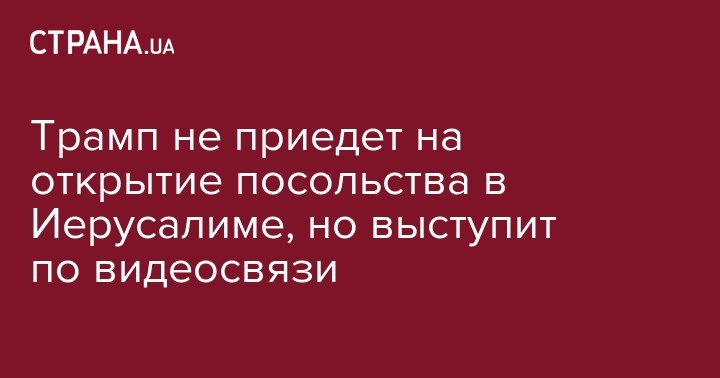 В понедельник, 14 мая, Дональд Трамп выступит на церемонии открытия нового здания посольства США в Иерусалиме в формате видеообращения.