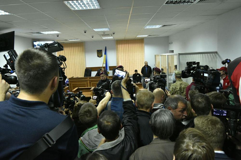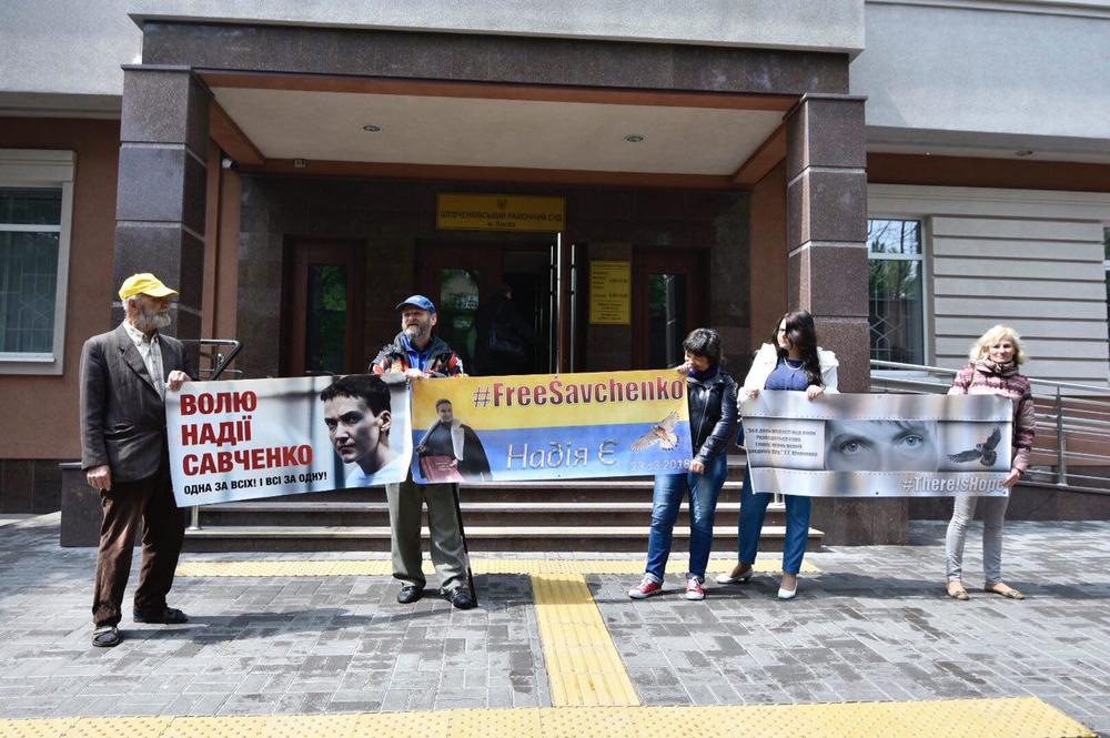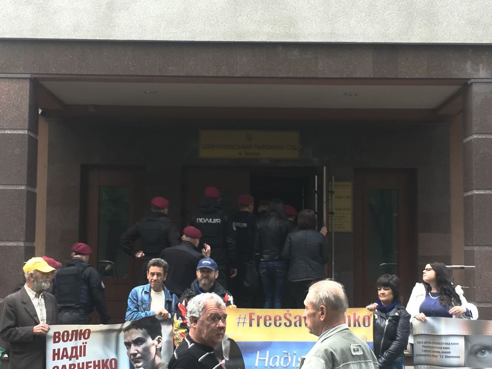 12:30 Перед началом заседания пятеро сторонников Надежды Савченко устроили что-то вроде пикета под зданием суда, передает корреспондент "Страны". Полицейские спокойно зашли в помещение суда.