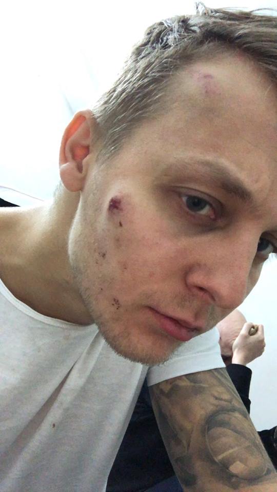 Наиболее выразительные повреждения – у товарища Александра Шуфрича в черной футболке с надписью Hard Rock.