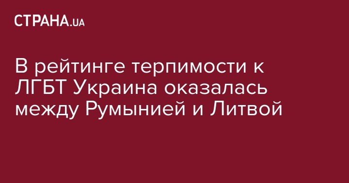 В рейтинге терпимости к ЛГБТ Украина оказалась между Румынией и Литвой
