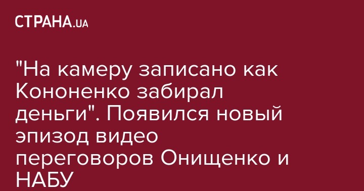 "На камеру записано как Кононенко забирал деньги". Появился новый эпизод видео переговоров Онищенко и НАБУ
