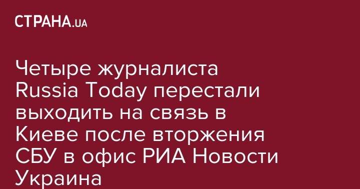 По меньшей мере четверо журналистов МИА "Россия Сегодня" в Киеве перестали выходить на связь после того, как в офис агентства ворвались сотрудники Службы безопасности Украины.