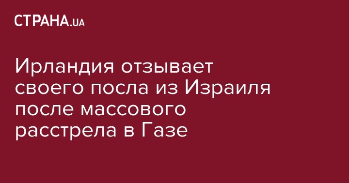 Власти Ирландии, как и Турции, отозвали своего посла из Израиля после гибели полусотни палестинцев на акции протеста в секторе Газа.