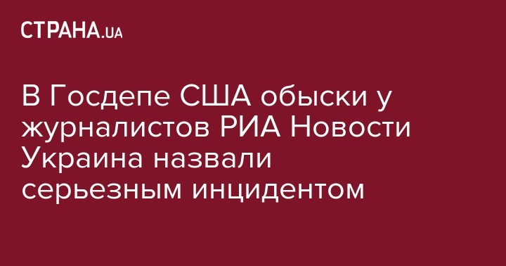 Соединенные Штаты считают серьезным инцидент с обысками квартир журналистов агентства "РИА Новости Украина" в Киеве и допросом главного редактора агентства, а также считают, что такого рода действия должны проводиться строго в соответствии с законом.