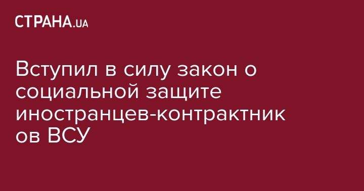 В Украине вступил в силу закон № 2409-VIII, направленный на усиление соцзащиты иностранцев и лиц без гражданства, проходящих контрактную службу в ВСУ.
