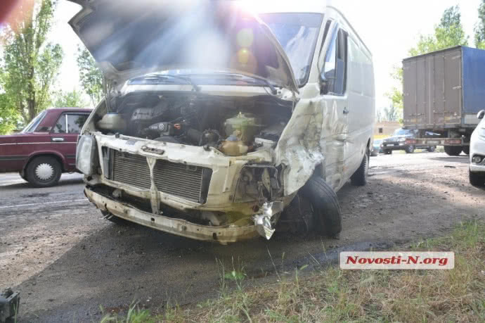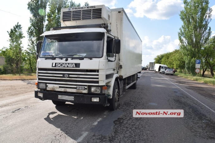 Внедорожник Volkswagen Touareg, грузовой автомобиль "Scania" и микроавтобус Volkswagen столкнулись на трассе Николаев - Херсон в селе Шевченково еще вечером в воскресенье, 13 мая.