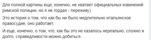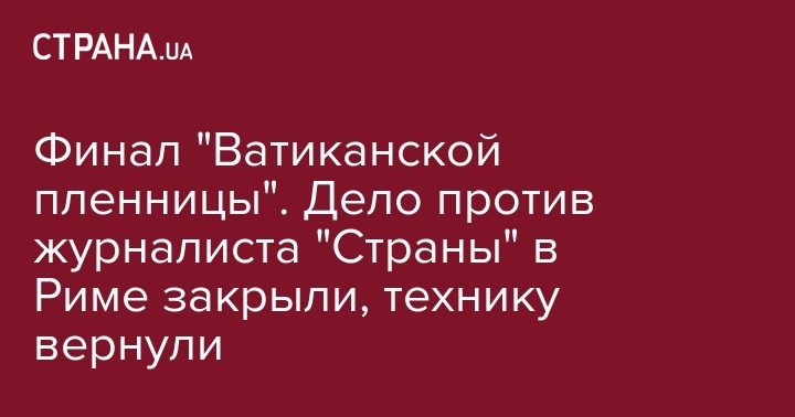 И вот, сегодня адвокат из Рима прислал ей эту фотографию. "Мое ватиканское дело закрыто за неимением улик, состава преступления нет, все безосновательные обвинения сняты, - как и арест с моей техники. Она уже в руках у адвоката, и скоро отправится в Киев. Для полной картины еще, конечно, не хватает официальных извинений римской полиции, но я не гордая - переживу)", - отмечает журналист "Страны".