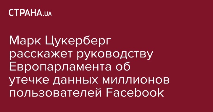 Глава социальной сети Facebook Марк Цукерберг встретится с руководителями Европарламента, чтобы ответить на их вопросы о скандале, связанном с утечкой личных данных миллионов пользователей.