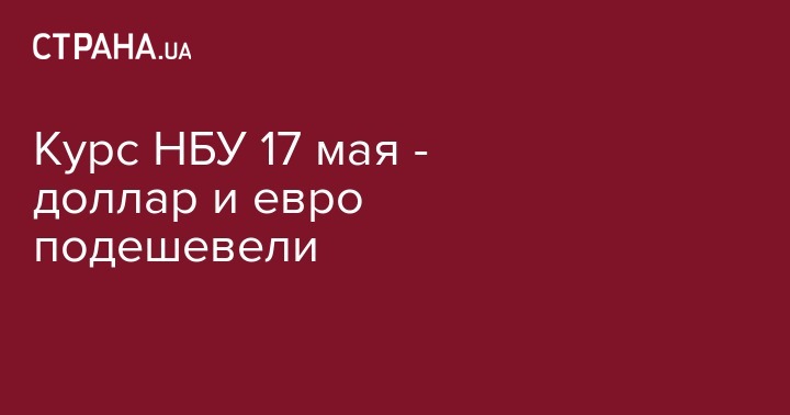 В четверг, 17 мая, Нацбанк установил официальный курс гривны по отношению к иностранным валютам. По сравнению со вчерашним днем доллар и евро подешевели.