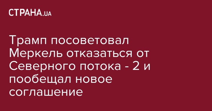 Президент США Дональд Трамп посоветовал канцлеру Германии Ангеле Меркель отказаться от поддержки обходного газопровода Северный поток-2 (Nord Stream 2). В обмен за это он пообещал начать переговоры о новом торговом соглашении Вашингтона с ЕС.