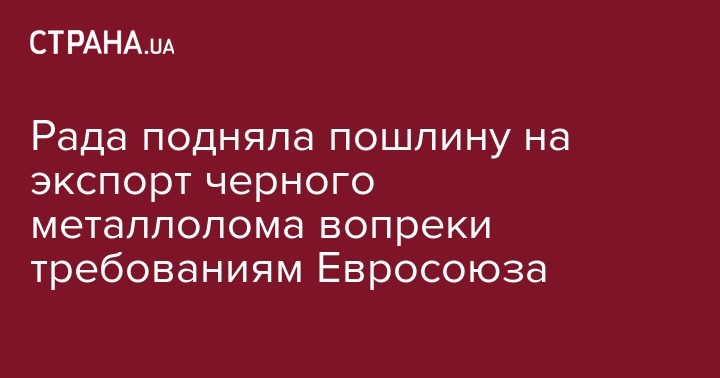 Народные депутаты повысили ставку экспортной пошлины на лом черных металлов с 30 до 42 евро за тонну. Ее действие снова продлено на 1 год.