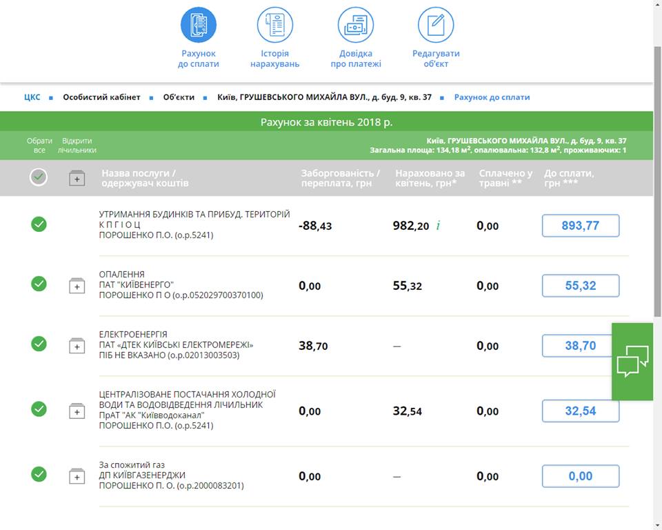 Юрист узнал данные о квартире Петра Порошенко на улице Грушевского. Как видно на скриншоте, президент Украины своевременно оплачивает коммунальные услуги.