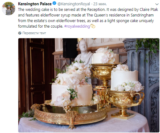 В Виндзорском дворце, где состоится торжественный прием на свадьбе герцога и герцогини Сассекских, уже сервировали свадебный торт.