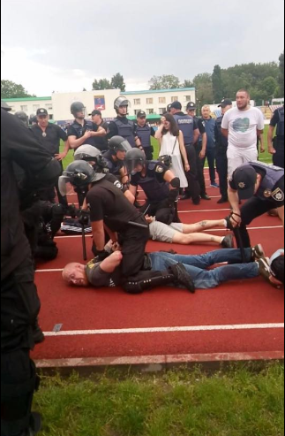Во время беспорядков на стадионе в Черкассах задержали ветерана АТО, который не пожал руку Порошенко